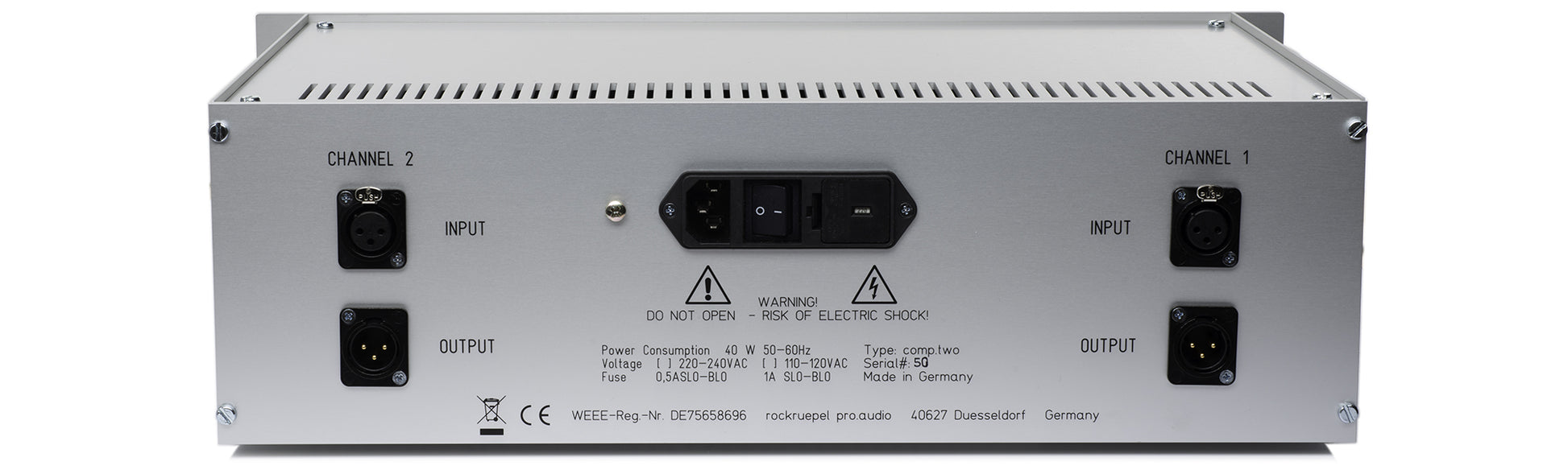 Some may say: “Tube-compressors sound good but they are too slow. I prefer VCA-compressors because of their speed“. The comp.two accomplishes both, with an attack up to 600 µs it is extremely fast but it also has a soft and really musical knee compression for your sound processing.